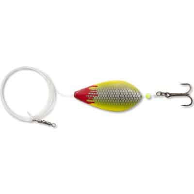 Die Farbkombination perl/gelb ist ein weiterer entscheidender Faktor. Perlmutteffekte imitieren das Schimmern von Beutefischen, während das leuchtende Gelb zusätzliche Aufmerksamkeit erregt. Die roten Akzente, die dem Köder den Namen „Bloody“ verleihen, simulieren verletzte Beute und lösen so einen unwiderstehlichen Fressreiz bei den Forellen aus. Egal ob klares oder trübes Wasser, dieser Spoon liefert ab!